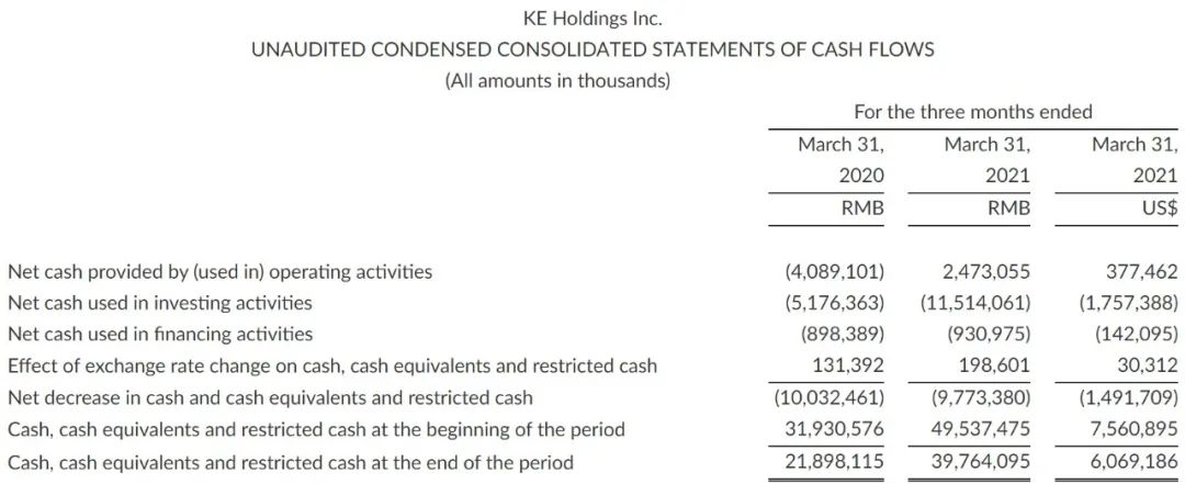 5月19日,貝殼找房發布了2021年第一季度未經審計的財務業績: