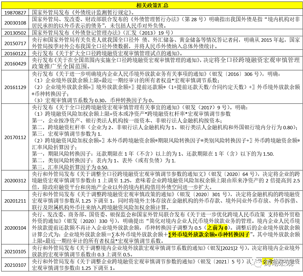 當(dāng)然,目前政策層面在跨境融資的相關(guān)參數(shù)設(shè)計(jì)上保持了一致性,如宏觀審慎調(diào)節(jié)系數(shù)和匯率風(fēng)險(xiǎn)折算因子均設(shè)定為1和0.50。