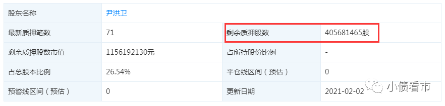 截至2021年2月,嶺南股份控股股東尹洪衛(wèi)已質(zhì)押4.06億股公司股份,占所持股票數(shù)量的78.7%,可以看出質(zhì)押率很高。