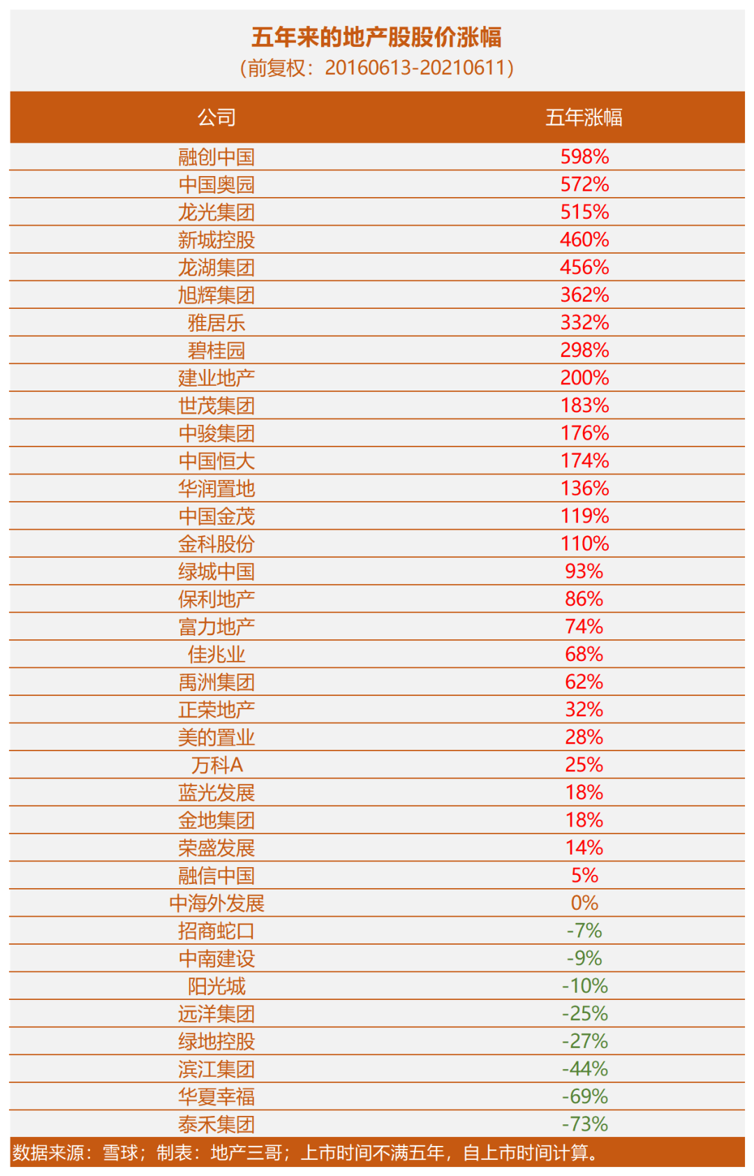 二、五年來(lái)的地產(chǎn)股股價(jià)漲幅