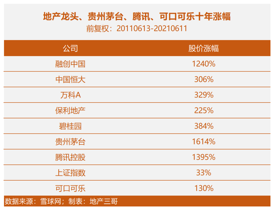 十年以來(lái),融創(chuàng)漲幅1240%,和貴州茅臺(tái)、騰訊控股、萬(wàn)華化學(xué)并駕齊驅(qū)。