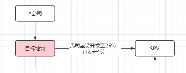 1.【直接資產(chǎn)轉(zhuǎn)讓】:我司成立SPV公司,用以受讓目標(biāo)地塊的土地使用權(quán);但由于當(dāng)?shù)卣畬τ谕顿Y額25%的要求限制,我司要求A公司將土地使用權(quán)抵押給我方,然后由我司墊資開發(fā)至轉(zhuǎn)讓要求后轉(zhuǎn)讓土地使用權(quán)。這種方式流程周期較長,且不可控因素較多。。