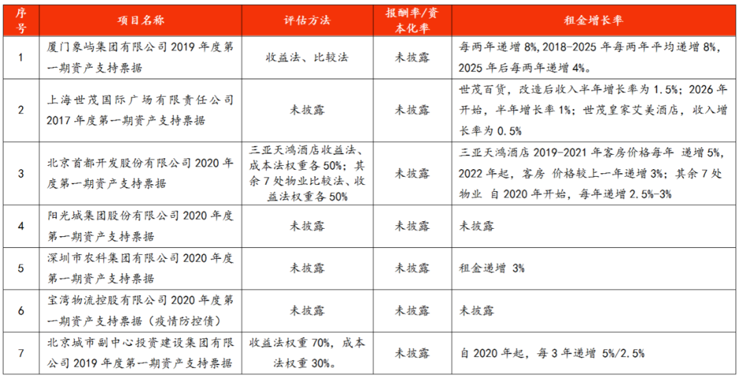 其次,報酬率/資本化率和租金增長率的設(shè)置。無論采取直接資本化法還是報酬資本化法,報酬率/資本化率和租金增長率是物業(yè)估值的直接影響因子,而上述項目都沒有披露報酬率/資本化率和租金增長率。