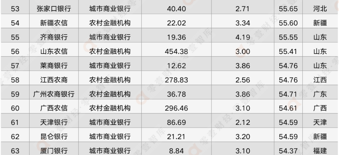 (二)聚焦中小銀行:陜西信合、北京銀行等5家成為TOP 30佼佼者