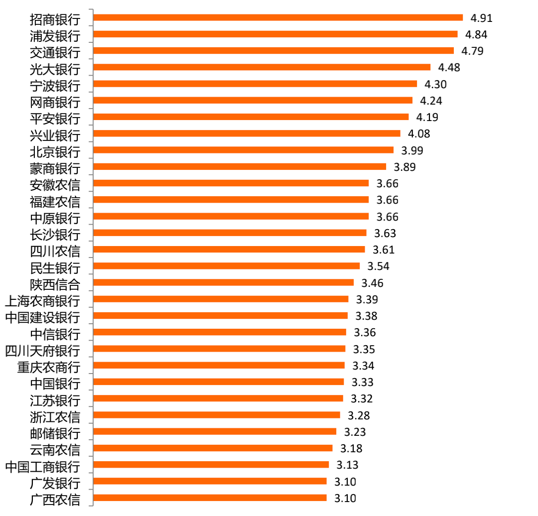 一、綜合評分結果:國有大行居首,浦發銀行、光大銀行入選前十名