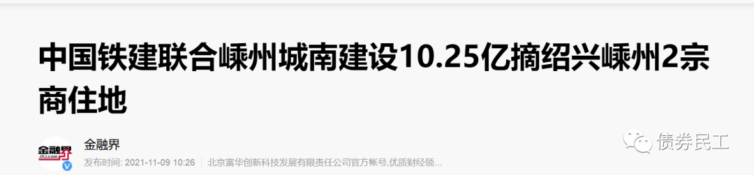 2021年11月9日,嵊州市城南建設投資有限公司的參股公司浙江盛天建設開發有限公司以10.25億元的價格摘得紹興市紹興嵊州市總出讓面積為總出讓面積13.76萬平方米的土地,土地性質為商住地。需要關注的是,浙江盛天建設開發有限公司是由中鐵十八局集團產業發展有限公司與嵊州市城南建設投資有限公司共同成立的。