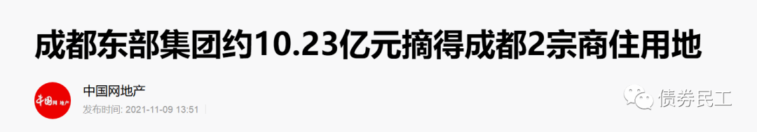 2021年11月9日,成都東部集團有限公司(實際控制人為成都東部新區黨工委管委會財政金融局)以10.23億元的價格摘得成都東部新區空港新城總出讓面積為181畝的土地,土地性質為住宅用地。