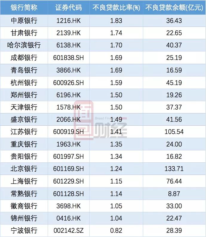 在18家上市城商行中,鄭州銀行的不良率排名第7位,與天津銀行相同。排名在首位的是同樣位于河南的中原銀行,不良率高達1.83%。