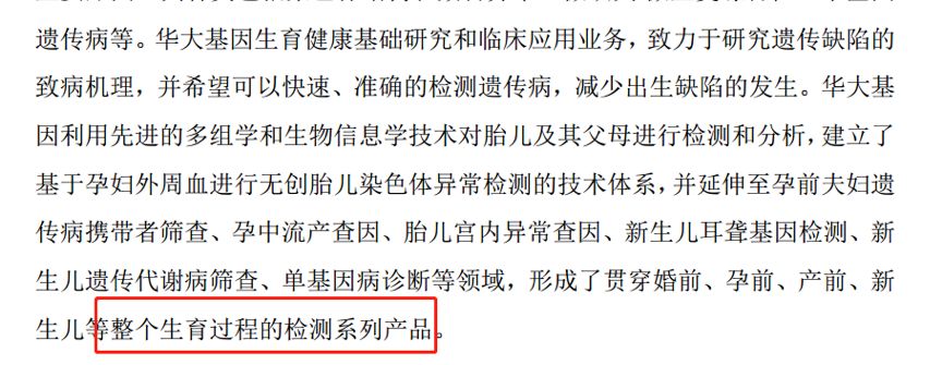 位于基因組學應用行業的華大基因在招股說明書中表示“基因組相關產業已形成了包含科學發現、技術發明、產業發展的完整產業鏈條。…… 新一代基因測序技術已被用于臨床醫學服務,代表性的應用有無創產前基因檢測。中國的代表企業是華大基因和貝瑞和康。”