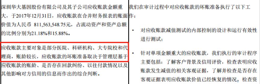 近年來,華大基因增長最快的業務為生育健康業務。自2013年至2017年,公司生育健康板塊的收入從3.27億增至11.36億,累計增幅247.40%,其在營收中的占比也由11.48%上升至54.21%,生育健康業務已成為拉動公司營收增長的主動力,也成為公司應收賬款的主要來源。公司在招股說明書中表示: