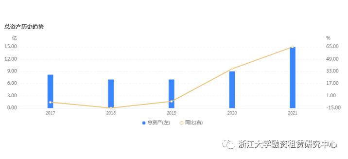 根據浙江香溢融資租賃有限責任公司2021年度報告,截至2021年末,香溢租賃總資產為14.65億元,同比增長64.97%,總負債為6.37億元,同比增長166.04%,凈資產為8.28億元,同比增長27.62%。2021年實現營業收入1.04億元,同比增長75.74%,凈利潤0.46億元,同比增長31.75%。