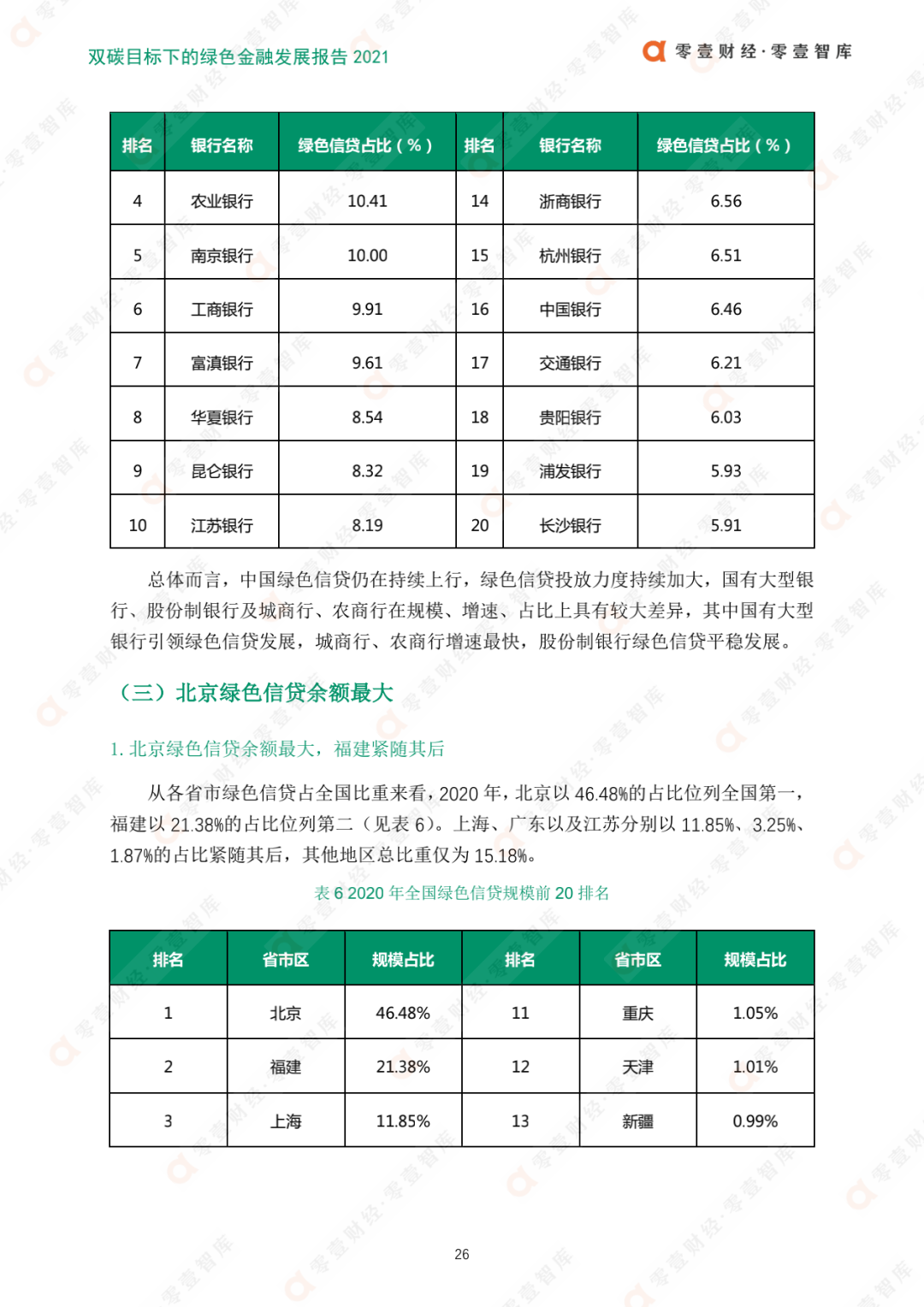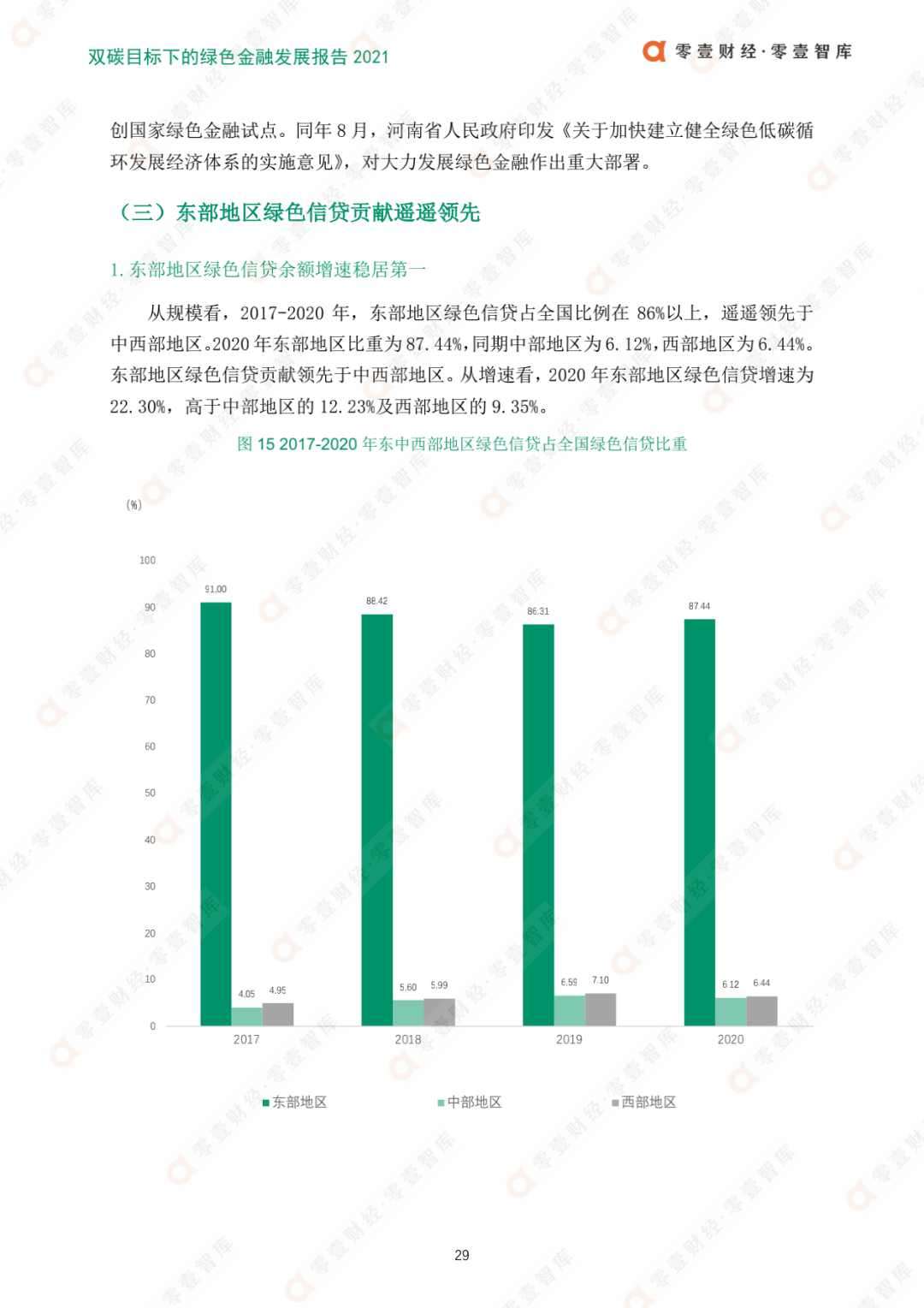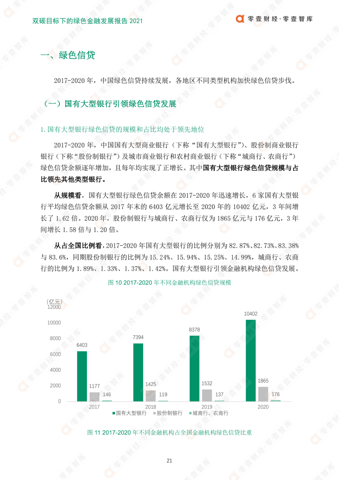 綠色信貸是中國綠色金融發展的主力軍。2020年,中國綠色信貸余額實現線性增長。其中,國有大型銀行引領綠色信貸發展,城商行、農商行綠色信貸增速度最快;北京綠色信貸余額最大,河南增速最快;東部地區綠色信貸余額增速穩居第一,中西部占比增大。
