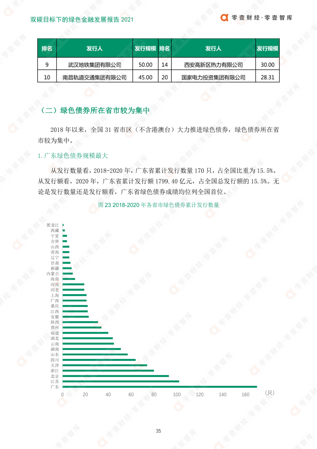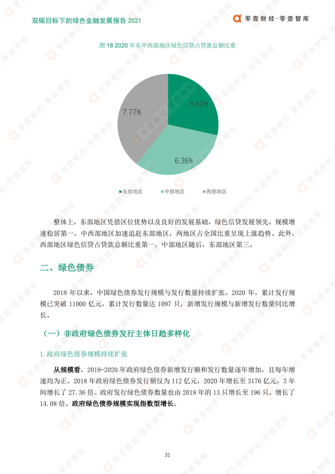 綠色債券是中國綠色金融發展的第二大載體。2020年,綠色債券累計發行規模已突破11000億元,累計發行數量達1097只。其中政府綠色債券規模持續擴張,非政府發行主體日趨多樣化;廣東綠色債券規模最大,全國發行省市較為集中;東部地區引領綠色債券發展,西部地區持續推進。