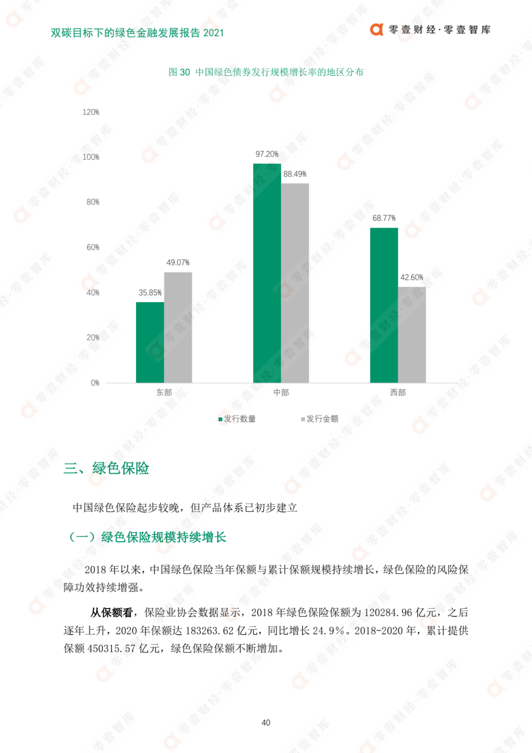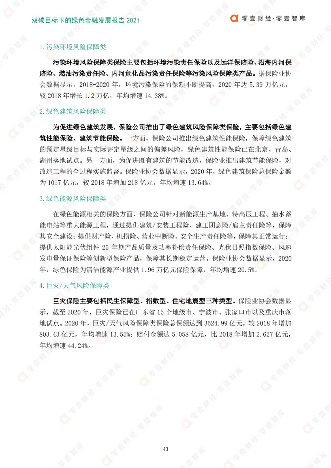 綠色保險規模持續增長。其中,2018-2020年中保額同比增長24.9%,賠付金額年均增長28.77%;綠色保險產品體系涵蓋了綠色保險產品、綠色保險服務及保險資金的綠色應用,綠色保險產品體系初步建立,在綠色金融中發揮越來越重要作用。