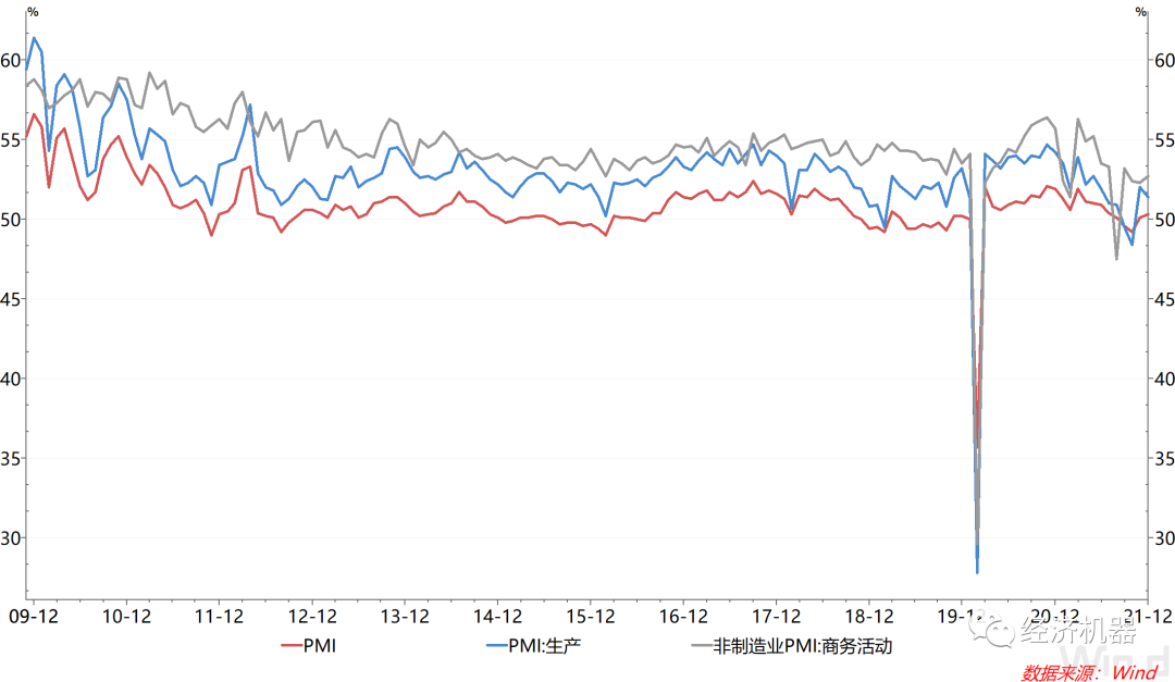 12月PMI錄得50.3%,弱于預期的50.5%,不過較上月的50.1%提升0.2個百分點,呈弱擴張狀態(tài);非制造業(yè)商務活動指數(shù)為52.7%,較上月的52.3%提升0.4個百分點。整體看,當前經濟活動繼續(xù)企穩(wěn),不過相對偏弱,結構分化較為明顯,沒有一致向上的合力,反映經濟動能依舊不足,下行壓力依舊,仍需政策端繼續(xù)發(fā)力,托底維穩(wěn)。
