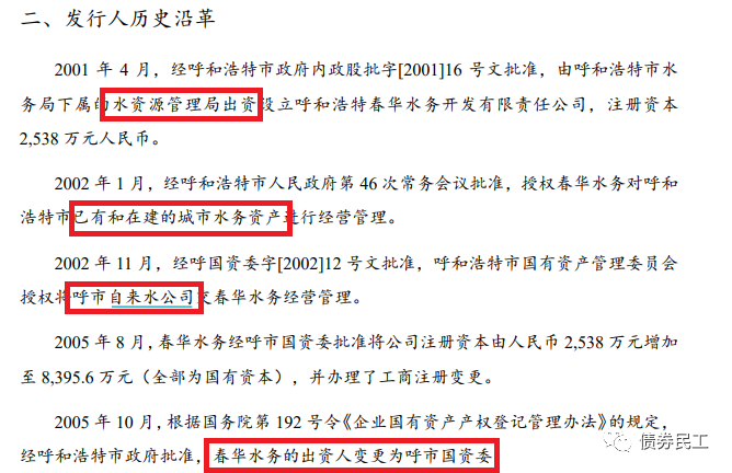 春華水務的出資人原為呼和浩特市水務局下屬的水資源管理局,后變更為呼和浩特市國資委,出資人為地方政府及其下屬機構和單位。