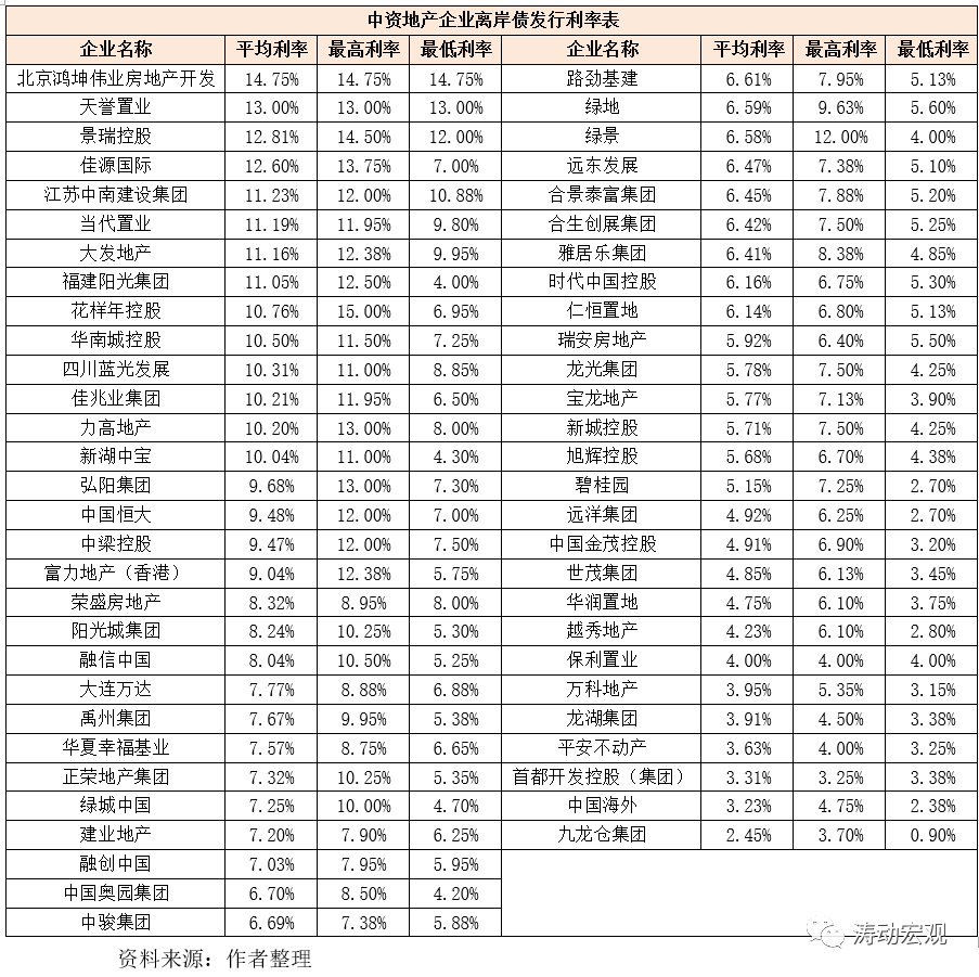 從融資成本來看,地產美元債多可被視為高收益債,發行利率普遍較高。