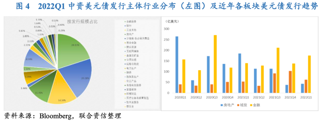 監管對境外發債分類管理的意圖顯現,房地產監管政策趨暖帶動信貸環境有所改善,預計二季度房企中資美元債將發行情況將有所回升;城投企業在嚴格的境內監管政策下,區縣級和地級市向海外融資的意愿或有所上揚,預計2022 年城投美元債發行量將穩步增長