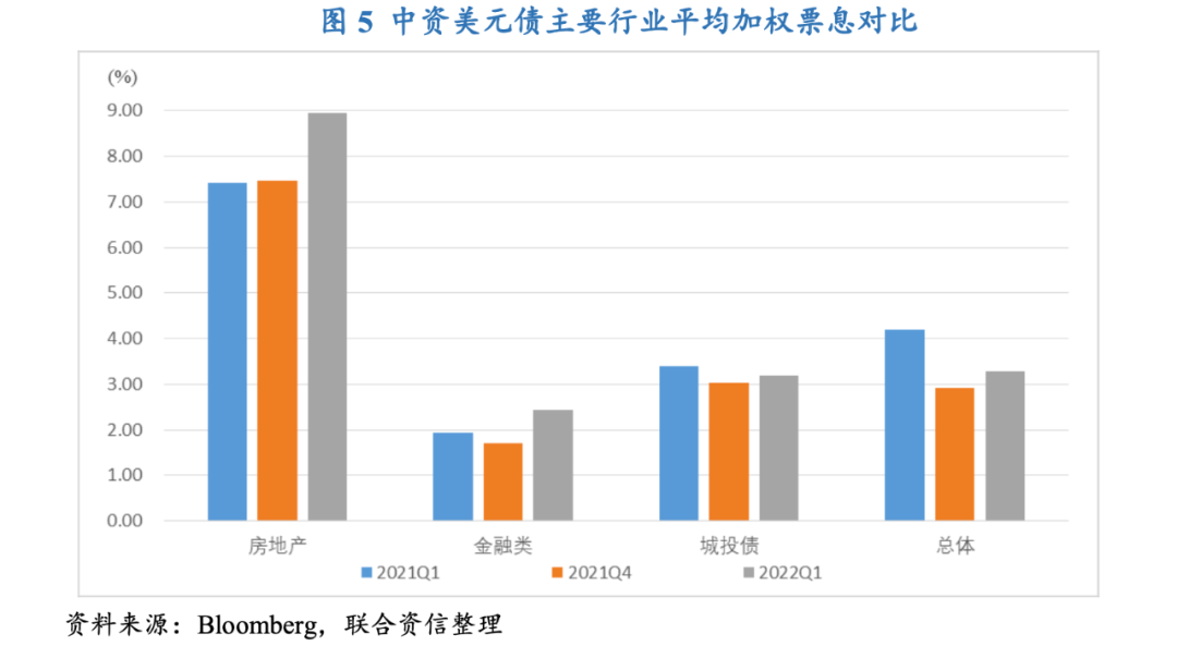 受美聯儲貨幣政策轉向的影響,中資美元債發行成本環比上揚;因房地產行業信用風險事件持續發酵,房地產板塊平均票息創2019年二季度以來的新高