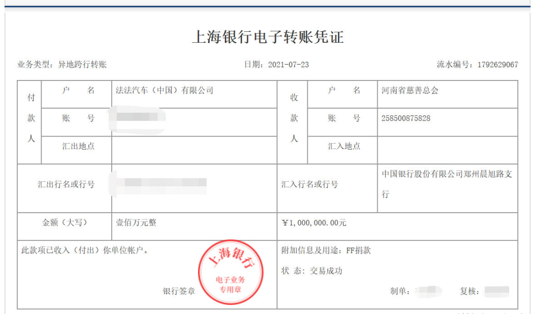 值得一提的是,此次河南災情,法法汽車(中國)汽車有限公司也向河南省慈善總會捐款100萬元。賈躍亭還@河南省慈善總會表示,“我們剛起步,盡一點綿薄之力。成為一家上市公司只是FF的開始,構建共享共創的出行未來才是我們的使命。”
