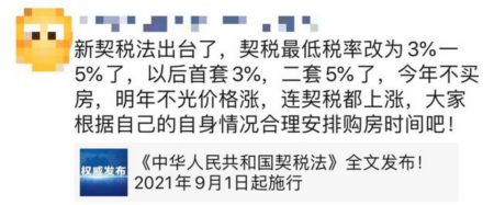 其中“房價要漲,契稅要漲,買房要趁早”的消息在朋友圈廣泛流傳,引起了不少恐慌!