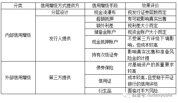 不良資產(chǎn)池的信用評級很低,必須經(jīng)過信用增級,發(fā)行信用評級高的新證券,才能得到市場的認(rèn)可。信用增級的主要方式分為兩種,分別是內(nèi)部信用增級和外部信用增級。外部信用增級操作起來比較簡單,最主要依賴于擔(dān)保人的信用。而內(nèi)部信用增級是資產(chǎn)證券化常采用的方法,其主要通過證券化的交易結(jié)構(gòu)設(shè)計來完成。
