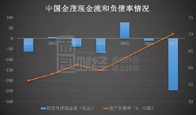 與近年來(lái)中國(guó)房地產(chǎn)企業(yè)整體情況一樣,中國(guó)金茂的負(fù)債率在逐年攀升,從2014年的59.19%提升至2017年末的70.08%。目前,中國(guó)金茂70.08%的資產(chǎn)負(fù)債率,處于行業(yè)中等水平。由于中國(guó)金茂的投資物業(yè)是按公允價(jià)值入賬,因此其資產(chǎn)負(fù)債率的真實(shí)水平可能會(huì)要高一點(diǎn)。
