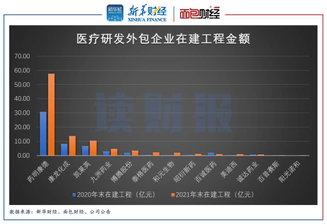 圖2:2020年和2021年部分醫療研發外包企業在建工程規模