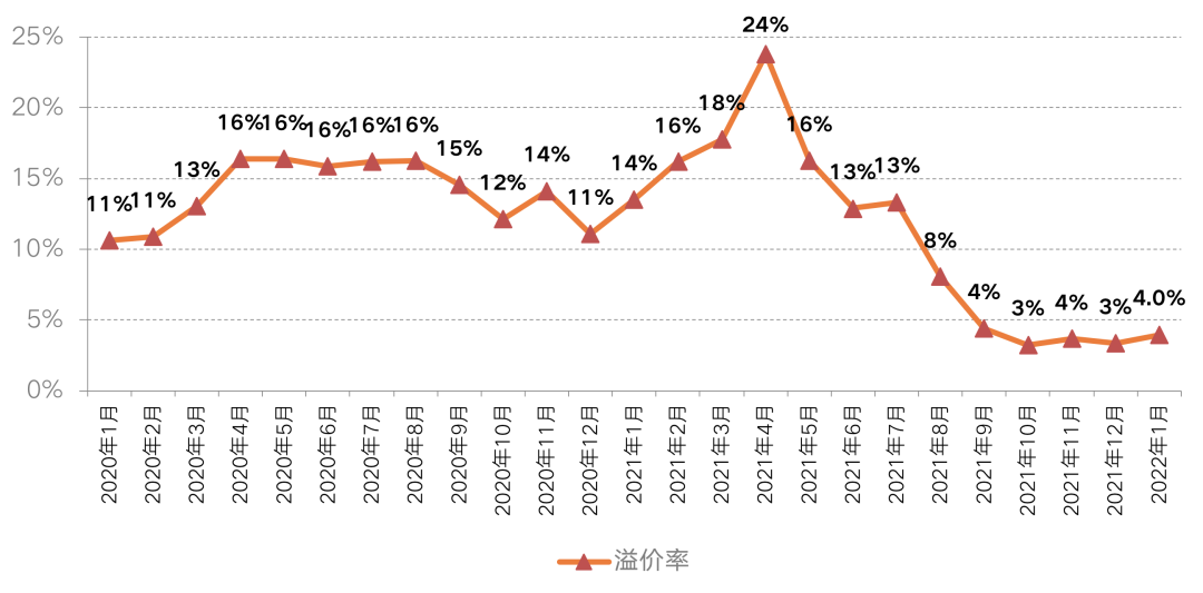 首月全國土地成交平均溢價率為4.0%,環比略有回升,但整體仍處于低位。
