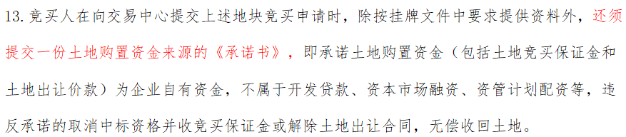 (1)對競拍主體的自有資金核查越來越嚴格,包括核查競拍主體的股東中是否有信托、資管、基金等可能提供融資的主體。例(某市集中拿地掛牌公告中關于自有資金的要求):