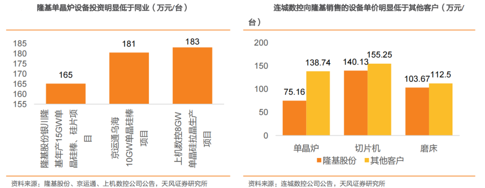 除此之外,也將觸手伸及設備端。例如隆基股份,在設備端參股連城數控,使得成本端具備名明顯的競爭優勢。
