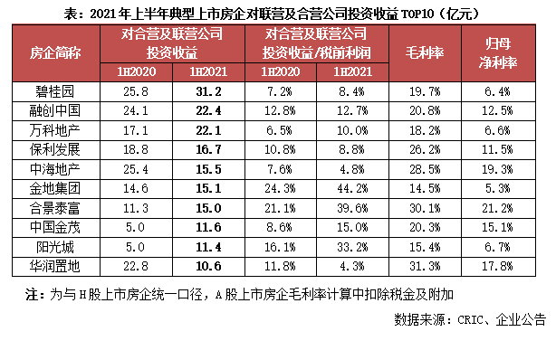2021年,隨著樓市調(diào)控的持續(xù)收緊,針對房企的“三道紅線”、針對房貸的“兩條紅線”,以及“集中供地”政策的落地,房企面臨更為嚴(yán)峻的外部環(huán)境,繼而合作趨勢進(jìn)一步強(qiáng)化,以對沖調(diào)控風(fēng)險(xiǎn)、優(yōu)勢互補(bǔ)提升競爭力。對于房企合作中的非并表項(xiàng)目而言,其開發(fā)利潤以權(quán)益法進(jìn)行核算,計(jì)入“對聯(lián)營及合營企業(yè)投資收益”科目,影響凈利潤表現(xiàn)。同時(shí),合作非并表項(xiàng)目的增加也會(huì)相應(yīng)地提升企業(yè)的歸母凈利率水平。