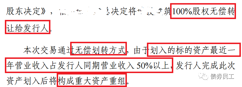 從披露的持有人會議決議內容來看,這個持有人會議議案的主要內容是將國有企業100%股權劃入城投公司,且劃入標的資產的收入占比超過城投公司的50%以上。