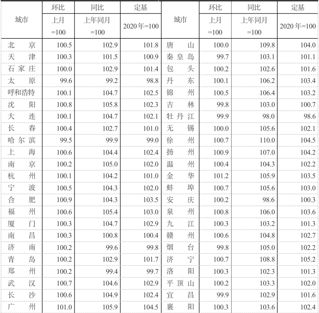 表1:2021年1月70個大中城市新建商品住宅銷售價格指數(shù)