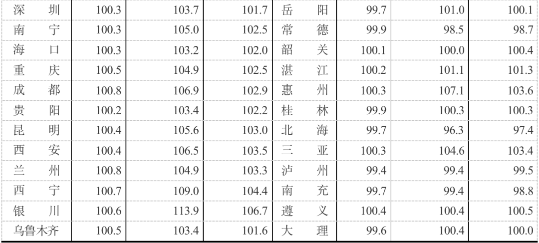 31個二線城市二手住宅銷售價格環(huán)比上漲0.4%,漲幅比上月擴(kuò)大0.3個百分點(diǎn),同比上漲2.5%,漲幅比上月擴(kuò)大0.3個百分點(diǎn)。35個三線城市二手住宅銷售價格環(huán)比上漲0.3%,漲幅比上月擴(kuò)大0.1個百分點(diǎn)。同比上漲1.5%,漲幅比上月擴(kuò)大0.1個百分點(diǎn)。