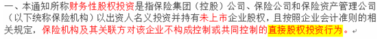 實際上,上述通知僅是針對保險資金開展財務性股權投資的限制,而財務性股權投資指的是對未上市企業的直接股權投資行為,如下(來自上述通知):