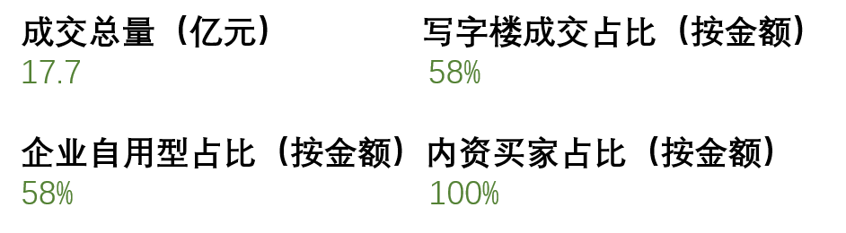北京大宗投資市場(chǎng)在一季度的整體表現(xiàn)較為平淡,僅達(dá)成兩宗。外資買(mǎi)家暫無(wú)成交,且自用型占比高于投資,市場(chǎng)活躍度降低。