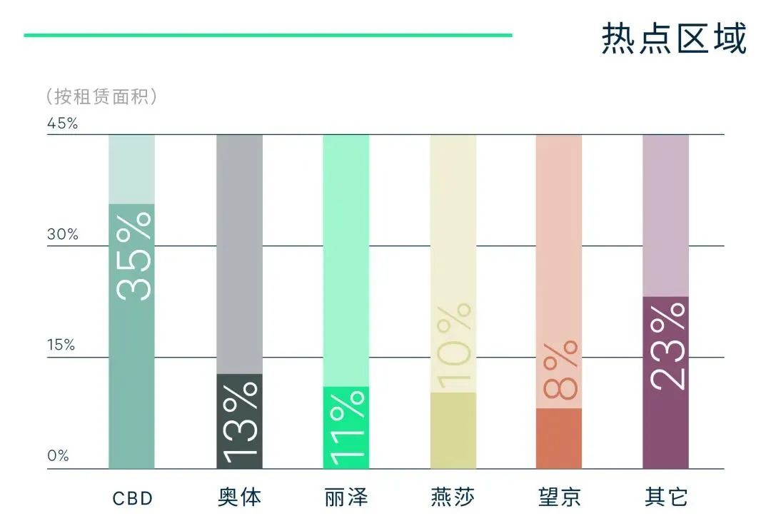 較去年同期,全市和五大核心商圈市場(chǎng)凈吸納量分別同比上升24.1%和27.3%,至18.5萬(wàn)和6.5萬(wàn)平方米,其中麗澤和CBD分列前兩位,是主要貢獻(xiàn)區(qū)域。