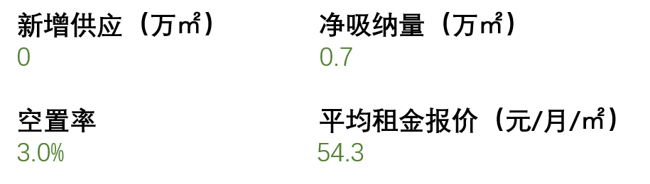 由于可租面積緊俏,本季租賃大多以5,000平方米左右的基本單元面積成交。凈吸納量環(huán)比上升58%至6,800平方米,空置率環(huán)比下降0.3個(gè)百分點(diǎn)至3.0%。