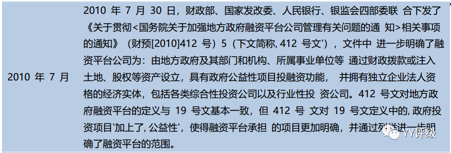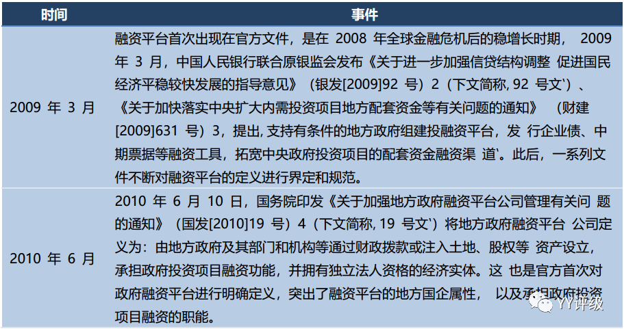 城投平臺的起始是由于地方財權和事權不匹配,地方政府為加強基礎設施建設投資而成立的,因為其為地方政府投融資服務,也被稱作投融資平臺。最初融資平臺的概念主要突出其地方國企屬性,以及承擔政府投資項目融資的職能,之后政策強調融資平臺具有政府公益性項目投融資功能?公益性項目又進一步完善成?公益性或準公益性項目。一般而言將融資平臺是由地方政府及其部門和機構等通過財政撥款或注入土地、股權等資產設立,承擔政府投資項目融資功能,并擁有獨立法人資格的經濟實體。