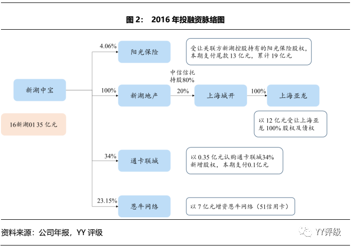 2016年,公司融資端有息債務增加42億元,包括當年新發行的16新湖0135億元,到期還本付息08新湖債14億元;另外回購股票支付20億元。帶來的資產端變化包括:(1)其他應收款增加31億元,主要包括4億元的股權轉讓款和27億元的與新湖地產、上海亞龍、上海新湖天虹的往來款;(2)可供出售金融資產增加18億元,主要是本期完成了對陽光保險的股份收購,支付尾款13億元,累計支付19億元。另外公司還在本期與恩牛網絡(51信用卡境內平臺)、通卡聯城簽署了投資協議,因投資尚未完成故未進表。總體來看,2016年公司在還舊債、回購股票以及上海舊改項目上的資金需求較大,投資布局方面暫緩。