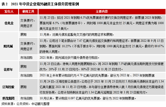注冊制落地,新階段伊始,疫情一定程度上延長了制度過渡期,但加速風險管理類政策的推出。隨疫情穩定,制度邊際收緊。2021年,作為疫情恢復后的第一年,企業短期債務增加,隨著經濟和行業逐步恢復,部分企業在積極自救。但受政策逐步落地、制度約束加強的影響,再融資規模不達預期,部分企業依然面臨較高的流動性風險。同時,制度進一步完善,也加快了投機企業風險的暴露,包括公司治理、內控機制不完善引發的融資風險,僵尸類空殼企業的清退風險等。整體來看,2021年信用風險仍處在釋放階段,在去年華晨、永煤事件的影響下,市場風險偏好仍在修復階段,地產企業風險持續顯露,將放慢市場情緒的恢復。我們預計,2022年,經濟下行壓力依然存在,制度落地和市場維持謹慎,將繼續推升企業流動性風險。短期內,境內風險退出機制尚不完善,市場風險偏好和承受能力依然較低,發行人和投資者均需提前做好流動性風險管理。政策邊際放松概率加大,同時疫情影響逐步減弱,給予債務人與債權人協商的空間。差異化處置的現象將越來越多,市場化主動風險管理工具的應用或繼續提升,延期兌付和破產重整的企業或有所增加。考慮政策依然謹慎,不會大水漫灌,去杠桿和強化制度約束依然是主流趨勢。“高杠桿高周轉”企業面臨調整,“高杠桿慢回款”企業風險繼續釋放,尤其需要關注已經出現債務展期的企業。在風險管理的方向上,雖然道路曲折,但未來可期。