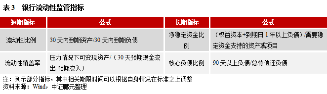 在管理指標上,可以分短期和長期監測指標,結合長短期不同的資金需求和風險承受能力去調整指標標準。其中,短期內應充分考慮負面事件對內外部再融資的影響,包括行業、區域等,合理評估壓力情況下的現金流入情況。長期,則需要根據業務發展規劃,合理制定再融資計劃,避免“短債長投”、“債務集中到期”等情況。這里可借鑒銀行流動性指標(詳見下表),建立符合自身風險承受能力的預警體系。