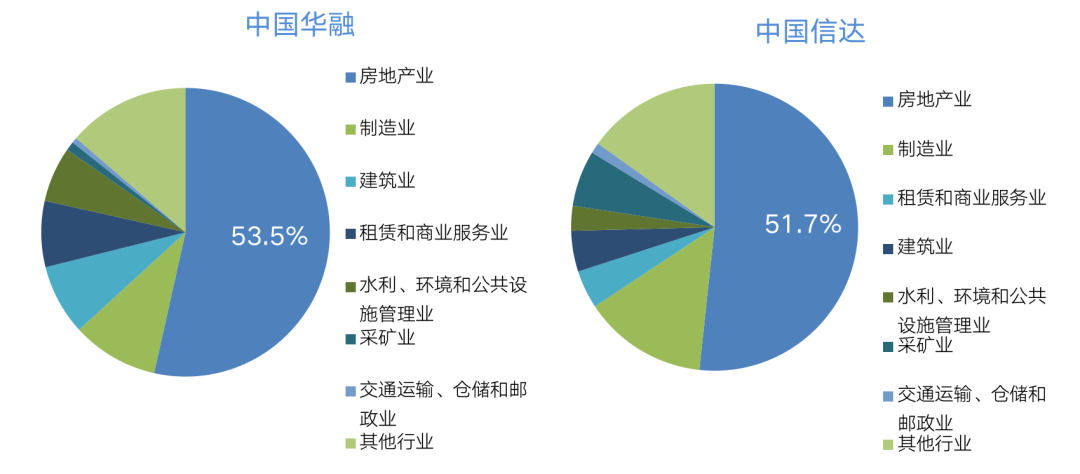 重組類不良資產(chǎn)中房地產(chǎn)占比過半,根據(jù)已上市的中國華融和中國信達的財報數(shù)據(jù),截至2020年上半年,若收購重組類不良資產(chǎn)按行業(yè)分類,涉房地產(chǎn)類占比分別為53.5%和51.7%。
