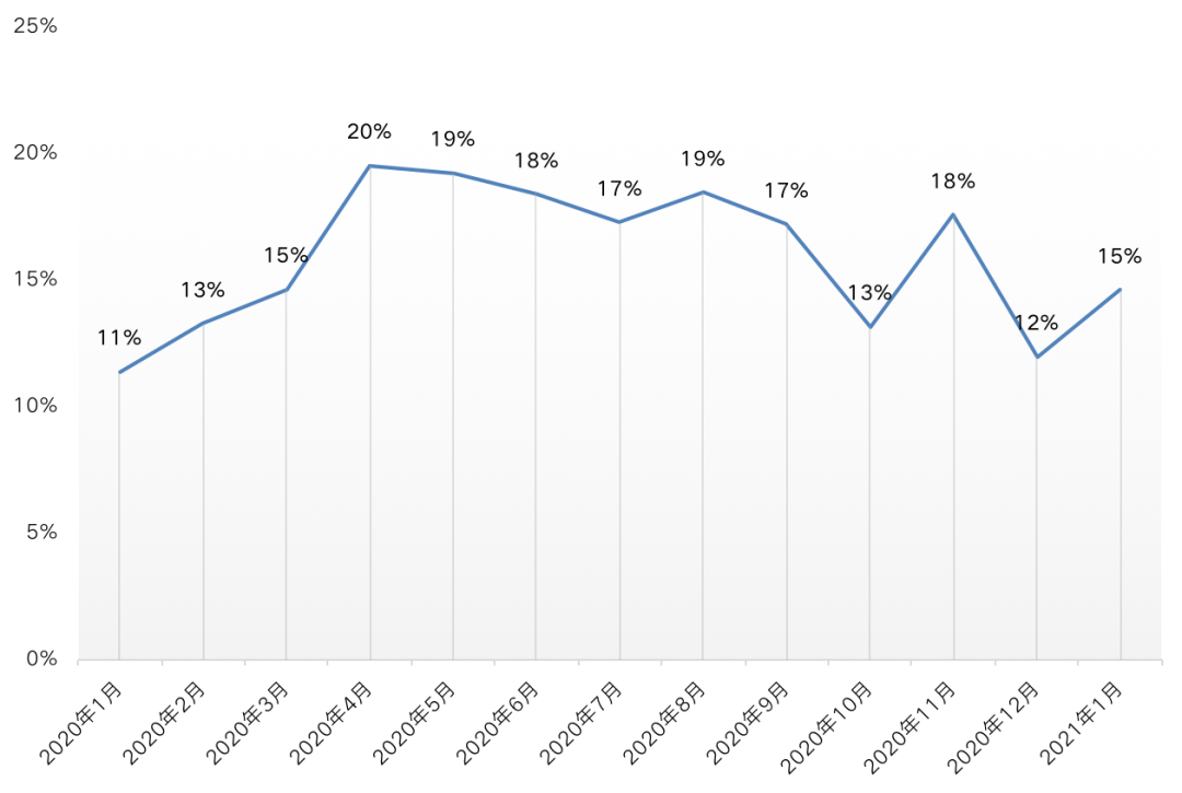 CRIC數據顯示,2020年4季度以來重點城市土地市場熱度整體呈現下滑趨勢。具體而言,2020年10月至2021年1月熱點城市成交涉宅地塊的平均溢價率為13.8%,較2020年1-9月下降了3.5個百分點。