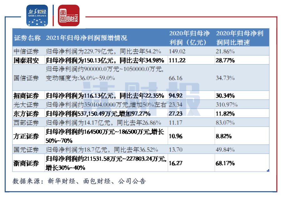 南京證券、財達證券和國聯(lián)證券均預告2021年歸母凈利潤的同比增速遠超上年同期。