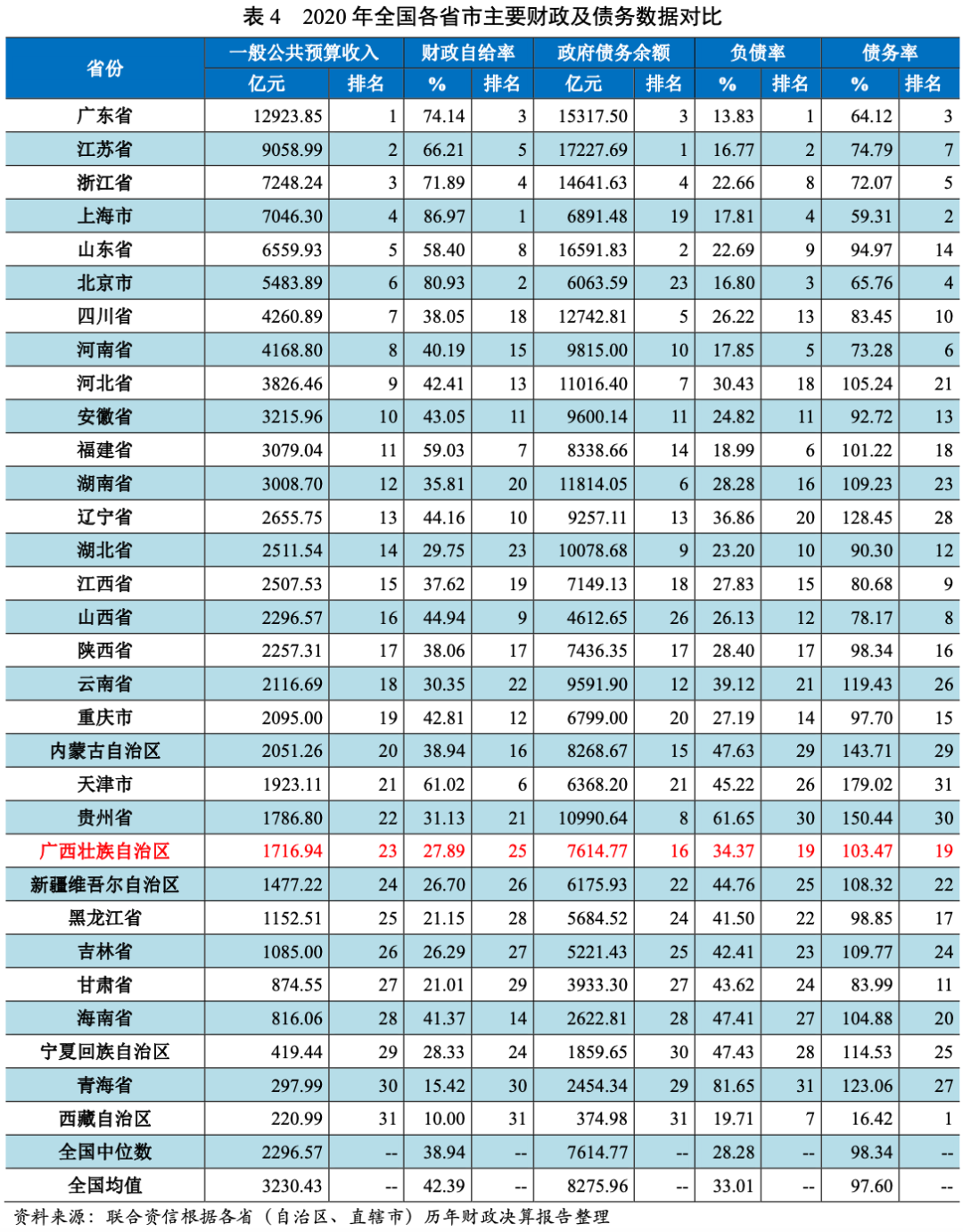 2.廣西自治區(qū)政府財(cái)政實(shí)力及債務(wù)情況