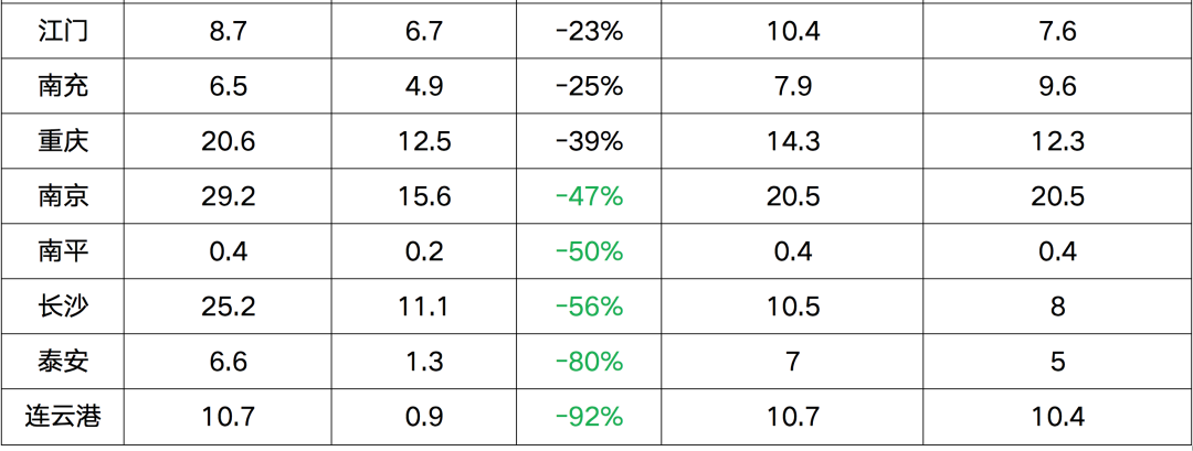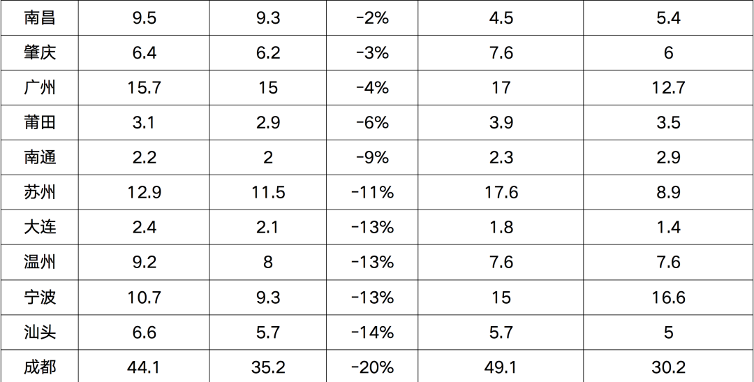 整體而言,各等級城市房價均呈現漲幅回落或跌幅擴大跡象,大部分二三線城市市場仍較為低迷。