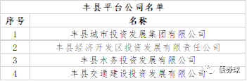 豐縣主要有4家平臺公司,分別為:豐縣城市投資發(fā)展集團(tuán)有限公司、豐縣經(jīng)濟(jì)開發(fā)區(qū)投資發(fā)展有限責(zé)任公司、豐縣水務(wù)投資發(fā)展有限公司和豐縣交通建設(shè)投資發(fā)展有限公司。