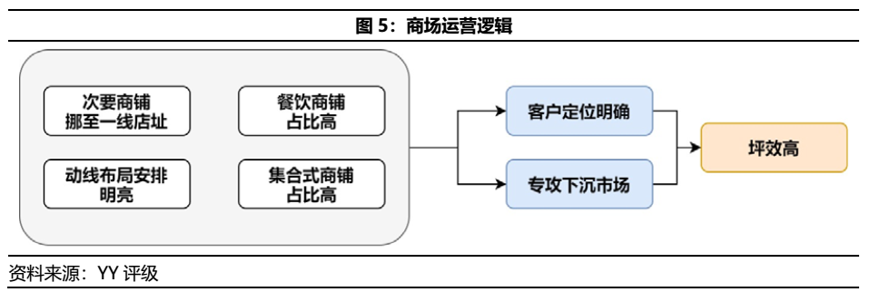 2.2 主要商場比較:基于下沉市場的“高頻+低消”的短平快模式勝出